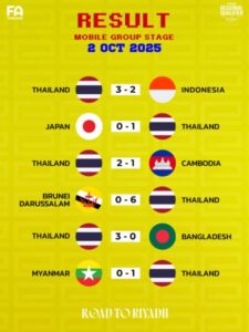 โปรแกรมนัดถัดไป ของ อีสปอร์ตทีมชาติไทย ในวันที่ 3 ตุลาคม 2568 มีดังนี้