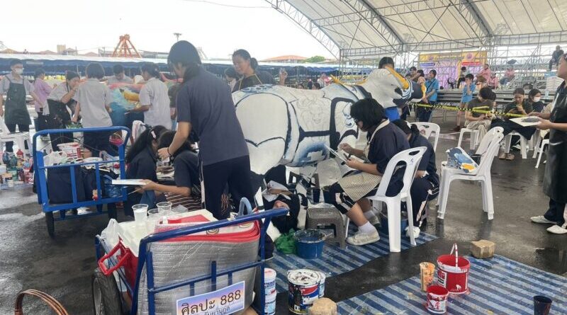 นายกเมืองชลให้นักเรียนประถม-มัธยม มีส่วนร่วมเพ้นท์สีควายปูนสวยงาม งานวิ่งควายชลบุรี