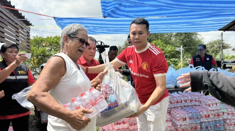 ปทุมธานี – ไม่ทิ้งกัน2อดีตส.ส.ตระกูลดังบุกริมเจ้าพระยาควักเงินส่วนตัวแจกถุงยังชีพ300ชุดสู้ภัยน้ำท่วม
