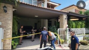 ภายในบ้าน บริเวณชั้นล่าง พบศพชาย 1 ราย นอนคว่ำหน้าจมกองเลือด ทราบชื่อคือ นายบัญชา ภูษาทอง อายุ 60 ปี มีบาดแผลถูกยิงที่หน้าอก 1 นัด และถูกแทงด้วยของมีคมที่ลำคอด้านซ้าย ใกล้กันพบกรรไกรตกอยู่ และมีปืนขนาด 9 มม. อยู่ในมือผู้เสียชีวิต เลือดนองพื้น