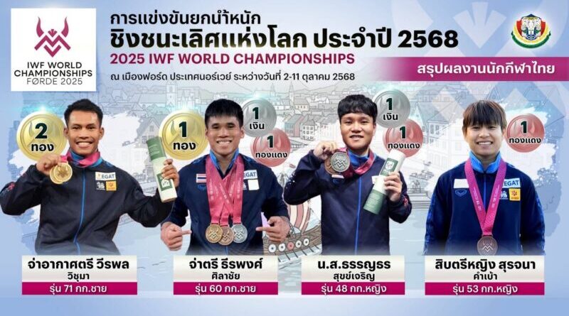 การแข่งขันยกน้ำหนักชิงชนะเลิศแห่งโลก ประจำปี 2568 ที่เมืองฟอร์ด ประเทศนอร์เวย์ เมื่อกลางดึกคืนวันที่ 6 ตุลาคม 2568 ทีมไทยส่ง จ่าเอก ณัฐวุฒิ สืบสวน รุ่น 79 กิโลกรัม ชาย
