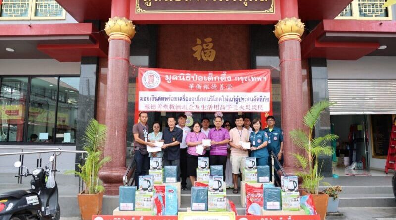 มูลนิธิป่อเต็กตึ๊ง รุดลงพื้นที่ซับน้ำตา เยียวยาผู้ประสบอัคคีภัย บริเวณตำบลท่าประดู่ อำเภอเมือง จังหวัดระยอง พร้อมมอบเงินช่วยเหลือค่าฌาปนกิจแก่ครอบครัวผู้เสียชีวิตรวม 7 ราย ณ บริเวณมูลนิธิสว่างพรกุศล จังหวัดระยอง