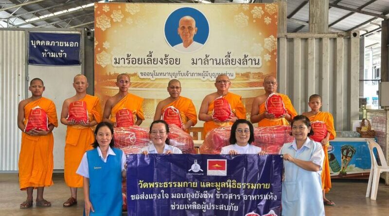 วันที่ 13 ตุลาคม 2568 ที่ศาลามหาทานบารมี อาคารครัว 71 ปี วัดพระธรรมกาย พระครูปลัดรัตนวีรวัฒน์ เจ้าอาวาสวัดพระธรรมกาย มอบหมายให้พระครูสมุห์สนิทวงศ์ วุฑฺฒิวํโส ผู้อำนวยการสำนักสื่อสารองค์กร วัดพระธรรมกาย พร้อมด้วยพระธีระพัฒน์ กุลธีโร หัวหน้าสำนักงานประสานงานเครือข่ายภายในประเทศ ผู้แทนมูลนิธิธรรมกาย และคณะศิษยานุศิษย์วัดพระธรรมกาย ส่งมอบถุงยังชีพบรรจุข้าวสารอาหารแห้งจำนวน 200 ชุด เพื่อนำไปช่วยเหลือคณะสงฆ์และประชาชนผู้ได้รับความเดือดร้อนจากสถานการณ์อุทกภัยในจังหวัดขอนแก่น เป็นสาธารณสงเคราะห์