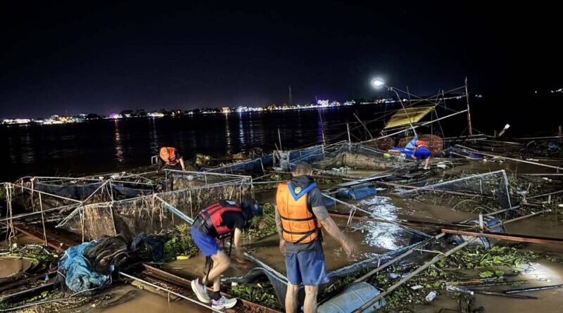 มุกดาหาร กระชังปลาลอยมาตามน้ำโขงไหลมาชนแพตำรวจน้ำเจ้าหน้าที่เร่งรื้อถอด