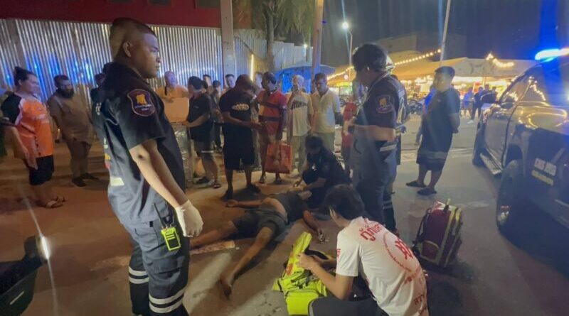เมื่อเวลา 00.46 น.วันที่ 13 ตุลาคม 2568 ศูนย์วิทยุหน่วยกู้ภัยสว่างบริบูรณ์ธรรมสถานเมืองพัทยา รับแจ้งเหตุทำร้ายร่างกาย ได้รับบาดเจ็บ เหตุเกิดที่หน้าตลาดลานเวย์ ริมถนนพัทยาสายสอง ต.หนองปรือ อ.บางละมุง จ.ชลบุรี หลังรับแจ้งจึงประสานเจ้าหน้าที่ตำรวจสายตรวจ สภ.เมืองพัทยา พร้อมด้วยเจ้าหน้าที่อาสาสมัครกู้ภัยฯรีบไปตรวจสอบ