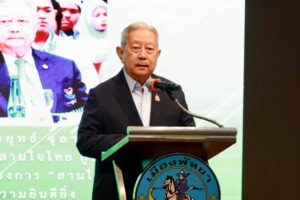 พลเอก สุรยุทธ์ จุลานนท์ นายกมูลนิธิ “สานใจไทย สู่ใจใต้” เดินทางตรวจเยี่ยมครอบครัวอุปถัมภ์และให้โอวาทแก่ผู้เข้าร่วมโครงการ “สานใจไทย สู่ใจใต้” จังหวัดชลบุรี ณ ห้องประชุมทัพพระยา ศาลาว่าการเมืองพัทยา