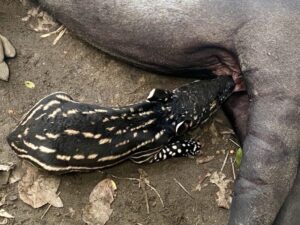 ลูกสมเสร็จแรกเกิดจะมีลายคล้ายแตงไทยทั่วตัว ซึ่งจะค่อยๆ เลือนหายไปเมื่ออายุประมาณ 6 เดือน ก่อนจะเปลี่ยนเป็นสีดำสลับขาวแยกกันชัดเจนตามลักษณะของสมเสร็จโตเต็มวัย โดยขณะนี้ยังไม่มีการตั้งชื่ออย่างเป็นทางการ แต่ทางสวนสัตว์เตรียมประกาศกิจกรรมตั้งชื่อเร็วๆ นี้