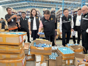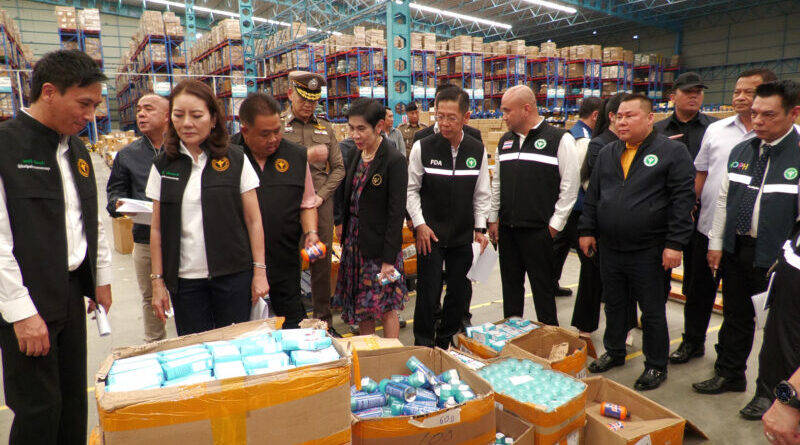 นายวรโชติ สุคนธ์ขจร รัฐมนตรีช่วยว่าการกระทรวงสาธารณสุข เปิดเผยว่า พฤการเข้าจับกุมและยึดของกลางจำนวนมากในครั้งนี้ สืบเนื่องเจ้าหน้าที่ตำรวจกองบังคับการปราบปรามการกระทำความผิดเกี่ยวกับการคุ้มครองผู้บริโภคได้รับเรื่องร้องเรียนและสำนักงานคณะกรรมการอาหารและยาให้ตรวจสอบเครื่องมือแพทย์ (คอนแทคเลนส์)ยี่ห้อ “Kilala” เจ้าหน้าที่ตำรวจทำการสืบสวนจนทราบสถานที่จัดเก็บและกระจายสินค้าซึ่งผลิตภัณฑ์ดังกล่าวหากผลิตโดยไม่ได้มาตรฐานการผลิตและไม่ทราบถึงแหล่งที่มาแล้วมีการนำไปใช้กับดวงตาอาจส่งผลต่อประสิทธิภาพในการใช้งานและเกิดความเสี่ยงติดเชื้อจากการใช้งานได้ต่อมาวันที่ 16 ตุลาคมพ.ศ. 2568 เจ้าหน้าที่ตำรวจ กก.4 บก.ปคบ. ได้ร่วมกับสำนักงานคณะกรรมการอาหารและยานำหมายศาลจังหวัดสมุทรปราการเข้าตรวจค้นสถานที่จัดเก็บและกระจายสินค้าภายในโกดังแห่งหนึ่งในพื้นที่ตำบลบางเสาธง อำเภอบางเสาธง จังหวัดสมุทรปราการตรวจยึดและอายัดของกลางจำนวน 385,070 ชิ้นส่งพนักงานสอบสวน กก.4 บก.ปคบ. ดำเนินคดีรายละเอียดดังนี้ 1.ผลิตภัณฑ์เครื่องมือแพทย์ที่ได้รับอนุญาตประเภทคอนแทคเลนส์จำนวน 322,500 ชิ้นมูลค่า 16,825,000 ล้านบาท / 2.ผลิตภัณฑ์ยาที่มิได้ขึ้นทะเบียนตำรับยาได้แก่ยาประเภทเจลทาลดไข้ยาฆ่าเชื้อสำหรับทาบริเวณผิวหนังจำนวน 1500 ชิ้นมูลค่าประมาณ 120,000 บาท / 3.ผลิตภัณฑ์อาหารที่ไม่มี อย. และไม่มีแสดงฉลากภาษาไทยได้แก่ผลิตภัณฑ์เสริมอาหารไบโอตินผลิตภัณฑ์เสริมอาหารแมกนีเซียมอาหารในภาชนะบรรจุปิดสนิทบะหมี่กึ่งสำเร็จรูปจำนวน 10,000 ชิ้นมูลค่า 800,000 บาท / 4.ผลิตภัณฑ์เครื่องสำอางที่ไม่มีเลขจดแจ้งและไม่แสดงฉลากภาษาไทยได้แก่ยาย้อมผมครีมทาหน้า สบู่ จำนวน 500 ชิ้นราคาประมาณ 50,000 บาท / 5.ผลิตภัณฑ์วัตถุอันตรายที่ไม่ได้รับอนุญาตได้แก่ ผลิตภัณฑ์ล้างห้องน้ำ จำนวน 1000 ชิ้น มูลค่าประมาณ 50,000 บาท / 6.ผลิตภัณฑ์สมุนไพร ที่ไม่มีเลขทะเบียนตำรับ ได้แก่ ยาทารักษาโรคสะเก็ดเงิน และยาพ่นสำหรับรักษาอาการคัดจมูก จำนวน 570 ชิ้น มูลค่าประมาณ 28,500 บาท จากการตรวจสอบพบว่าไม่ได้รับแจ้งรายละเอียดนำเข้าเครื่องมือแพทย์จากสำนักคณะกรรมการอาหารและยาแต่อย่างใด