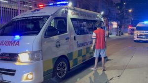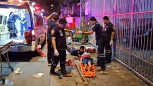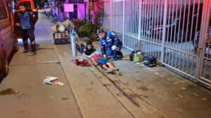 อุกอาจ วัยรุ่นขี่มอไซค์ไล่ยิงกันกลางซอยแบริ่ง หญิงเข็นรถเก็บของเก่าถูกลูกหลงกระสุนเจาะศีรษะเจ็บสาหัส