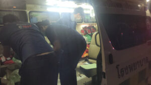 ด้าน นายสังคม อายุ 52 ปี สามีผู้บาดเจ็บ ที่รุดมาดูภรรยาที่ได้รับบาดเจ็บ เล่าว่า คุณยายออกมาเก็บของเก่า ตั้งแต่ประมาณหนึ่งทุ่ม กำลังจะกลับเข้าบ้าน ปกติแล้วจะเดินอยู่แถวนี้ประจำ ทราบข่าวเพราะตำรวจไปเรียก เพราะตอนนั้นตนนอนอยู่
