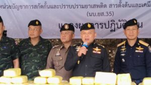 ทั้งนี้ตั้งแต่ 1 ตุลาคม 2568 – ปัจจุบัน หน่วยบัญชาการสกัดกั้นและปราบปรามยาเสพติด สารตั้งต้น และเคมีภัณฑ์ ชายแดนภาคเหนือ (นบ.ยส.35) มีผลการสกัดกั้นและปราบปรามอย่างต่อเนื่อง โดยมีการปะทะกับกลุ่มขบวนการในพื้นที่ชายแดน จำนวน 4 เหตุการณ์ ตรวจยึดจับกุม 8เหตุการณ์ ส่วนใหญ่ อยู่ในพื้นที่ของจังหวัดเชียงราย จังหวัดเชียงใหม่ และ จังหวัดน่าน ตามลำดับ สามารถตรวจยึด จับกุม ยาบ้า ได้กว่า 14.8 ล้านเม็ดเศษ ไอซ์ 570 กิโลกรัม เฮโรอีน 1 กิโลกรัม สถานการณ์ยาเสพติดเดือนตุลาคม 2568 ยังคงรุนแรง โดยมีการจับกุมมากในพื้นที่จังหวัดเชียงรายและเชียงใหม่ ขบวนการค้ายาเสพติดได้ปรับวิธีลำเลียงโดยใช้รถยนต์ขนจากแนวชายแดนมาพักในพื้นที่ชั้นใน เช่น อำเภอเมืองและเวียงป่าเป้า จังหวัดเชียงราย และอำเภอแม่แตง จังหวัดเชียงใหม่ ก่อนส่งต่อไปยังภาคเหนือ ตอนล่าง ภาคกลาง และภาคใต้ โดยใช้วิธีอำพรางซุกซ่อนในเครื่องอุปโภคบริโภค หรือลำเลียงยาเสพติดผ่านการขนส่งพัสดุภัณฑ์ และรถโดยสารประจำทาง คาดว่าสถานการณ์จะทวีความรุนแรงขึ้นในช่วงฤดูท่องเที่ยว ซึ่งนบ.ยส.35 ดำเนินการตาม 5 มาตรการหลัก โดยมุ่งบริหารจัดการให้เป็นไปตามแผนปฏิบัติการ เสริมการข่าวเชิงรุกเพื่อนำไปสู่การจับกุมเครือข่ายค้ายาเสพติด จัดกำลังลาดตระเวนและตั้งจุดตรวจสกัดกั้นยาเสพติดตามแนวชายแดน ดำเนินการปราบปรามและขยายผลถึงนายทุนผู้สั่งการ รวมทั้งเสริมสร้างความเข้มแข็งให้ชุมชนชายแดนร่วมต้านและเฝ้าระวังปัญหายาเสพติดอย่างยั่งยืน ในช่วงฤดูหนาวที่มีนักท่องเที่ยวจำนวนมากขึ้นได้เตรียมแผนรักษาความมั่นคงและความปลอดภัยอย่างเข้มงวด จัดกำลังลาดตระเวนแนวชายแดน เส้นทางหลักและเส้นทางท่องเที่ยว เสริมการข่าวทางอากาศและภาคพื้นดิน พร้อมประสานงานกับฝ่ายปกครองและตำรวจในพื้นที่ เพื่อแลกเปลี่ยนข้อมูลและแจ้งเตือนสถานการณ์อย่างรวดเร็ว โดยเน้นการปฏิบัติด้วยความรอบคอบและคำนึงถึงความปลอดภัยของประชาชนเป็นสำคัญ