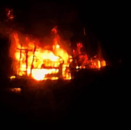 ทั้งคู่พยายามใช้ถังดับเพลิงแต่เอาไม่อยู่ จึงต้องสละเรือใหญ่แล้วลงเรือเล็กหนีเข้าฝั่งรอดชีวิตหวุดหวิด โดยเรือถูกไฟเผาวอดทั้งลำ ใช้เวลากว่า 4 ชั่วโมงเพลิงจึงสงบ