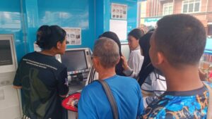 พังงา-ชาวพังงาแห่ยืนยันตัวตนรับสิทธิ “คนละครึ่งพลัส”แน่นธนาคาร ฝากขอบคุณรัฐบาลที่ช่วยลดค่าใช้จ่ายในครัวเรือน