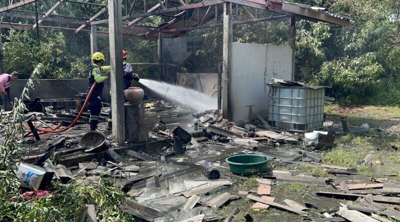 อ่างทอง – ระทึกโรงงานพลุระเบิดชายวัย59ปีถูกไฟคลอกเจ็บสาหัส1รายเจ้าหน้าที่หนีตายพลุระเบิดซ้ำ