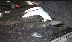 ตรวจสอบบริเวณจุดเกิดเหตุมีรถบรรทุกยางมะตอย จำนวน 1 คัน รถบดถนน 2 คัน และรถปูลาดยางมะตอย 1 คัน มีเศษชิ้นส่วนรถยนต์คู่กรณีติดอยู่กับรถปูยางมะตอย พร้อมทั้งมีเศษชิ้นส่วนรถตก และอุปกรณ์ที่ใช้ทำถนนไม่ว่าจะเป็นพลั่ว รถไสเศษหินดิน เสื้อสะท้อนแสง กระติกน้ำ รองเท้าคนเจ็บ ทั้งหมดวางกระจัดกระจายเกลื่อนถนน ซึ่งเป็นภาพที่น่าสลดใจ