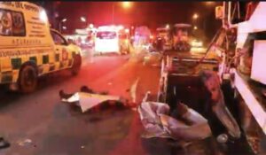 23-10-68ชุมพร-”กวาดเรียบ เจ็บระนาว 5ราย“หนุ่มใหญ่ขับกระบะชนคนงานทำถนน