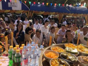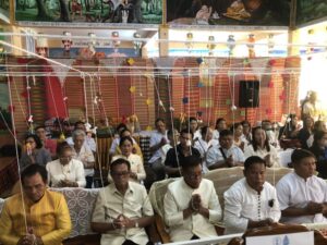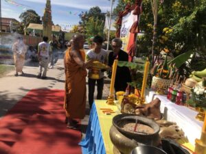 มี หลวงปูมหาบุญมี ติสุสวโร วัดป่าสันติวันพันชาติ จังหวัดมหาสารคาม เป็นประธานฝ่ายสงฆ์ จุดเทียนชัย