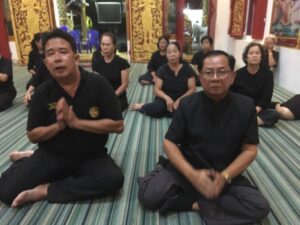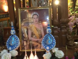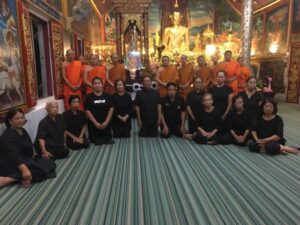 จากนั้นพระอธิการ ชาญชัย กตฺวีโร เจ้าอาวาสวัดร้องอ้อ จุดเทียนถวายพระพุทธ หน้าองค์พระประธานในพระวิหาร จากนั้นนำพระภิกษุสามเณร และชาวบ้าน ร่วมสวดเจริญพุทธมนต์ทำวัตร หน้าพระฉายาลักษณ์ สมเด็จพระนางเจ้าสิริกิติ์ พระบรมราชินีนาถ พระบรมราชชนนีพันปีหลวง และกรวดน้ำอุทิศถวาย เป็นพระราชกุศล
