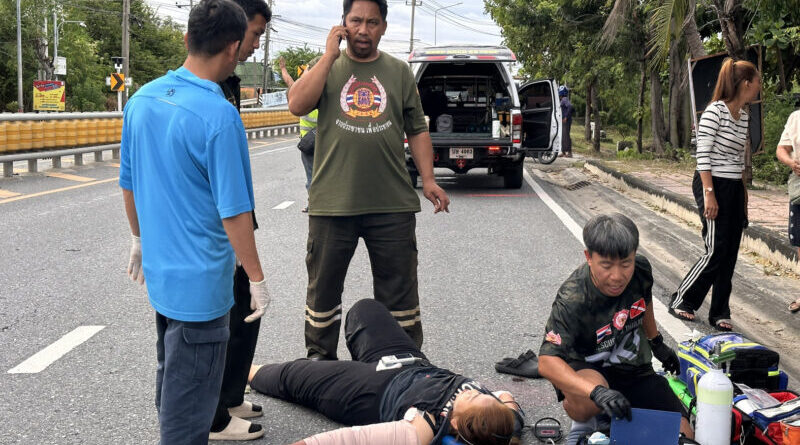 เมื่อช่วง 15.30 น. วันที่ 25 ตุลาคม 2568 เจ้าหน้าที่ตำรวจ สภ.บางเสาธง ได้รับแจ้งเหตุว่ามีผู้ถูกแทงและรถจักรยานยนต์ล้ม ได้รับบาดเจ็บ เหตุเกิดบนถนนสายศรีวารีน้อย ตำบลศีรษะจรเข้น้อย อำเภอบางเสาธง จังหวัดสมุทรปราการ หลังรับแจ้งจึงพร้อมด้วยเจ้าหน้าที่มูลนิธิร่วมกตัญญู เดินทางตรวจสอบ
