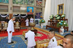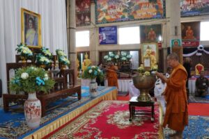 จังหวัดกาญจนบุรี จัดพิธีถวายน้ำสรงพระบรมศพเบื้องหน้าพระฉายาลักษณ์ สมเด็จพระนางเจ้าสิริกิติ์ พระบรมราชินีนาถ พระบรมราชชนนีพันปีหลวง