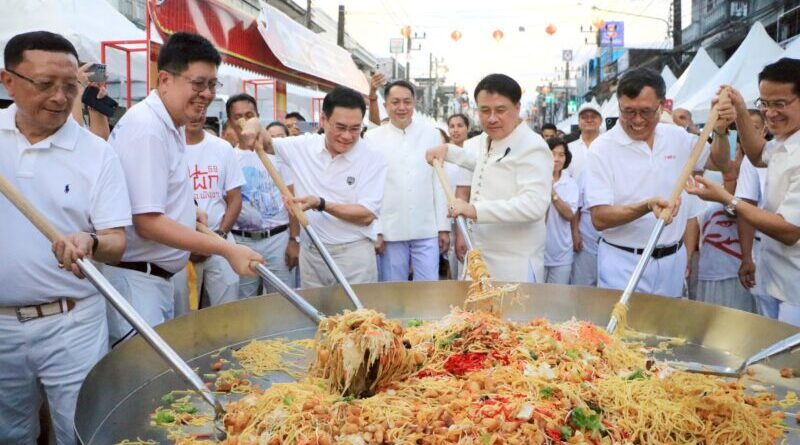 พังงา–รมช.เกษตร ร่วมผัดหมี่มงคลเก้าเซียนกระทะยักษ์ เปิดงานอิ่มบุญกินผัก ปิดถนนกลางตลาดท้ายเหมืองกินอาหารเจฟรีกว่า100ร้าน