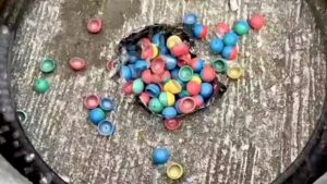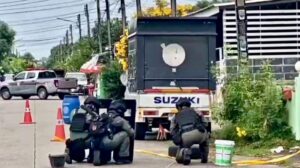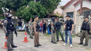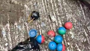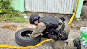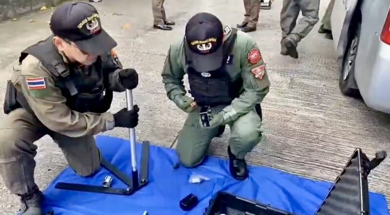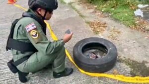 ตำรวจชุด EOD เข้าตรวจสอบ วัตถุต้องสงสัย พันเทปสีดำ กลางหมู่บ้าน พบเป็นประทัดลูกบอล พร้อมใช้งาน