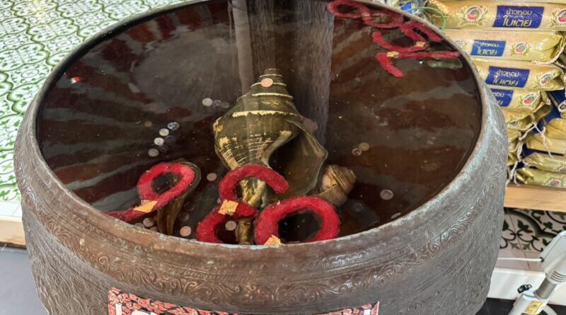 โดยสิ่งของต่างๆที่มาแก้บนทั้งหมดทางอาศรมจะนำไนปบริจาคให้ทางโรงเรียน วัด โรงพยาบาล มูลนิธิต่างๆเพื่อนำไปใช้ประโยชน์ต่อไป ก่อนกลับหลายคนยังได้ไปส่องเลขอ่างน้ำมนต์หน้าองค์ปู่ฤาษีพรหมเมศเพื่อนำไปเสี่งโชคโดยเลขอ่างน้ำมนได้แก่ 0 1 3 5 8 9 ที่ลอยวนจับคู่กันเรียกว่าเทวะบันดาล