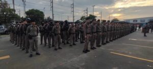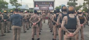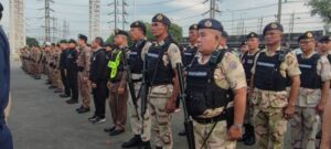 พล.ต.ต.พีรพล โชติกเสถียร ผู้บังคับการตำรวจภูธรจังหวัดปทุมธานี นำกำลังพลเจ้าหน้าที่ตำรวจ กก.สืบสวน ภ.จว.ปทุมธานี และ ตร.ในสังกัด ภ.จว.ปทุมธานี ทุก สภ.ฯ ตร.ตรวจคนเข้าเมือง จ.ปทุมธานี ศูนย์พิสูจน์หลักฐาน 1 ตร.ทางหลวง ตร.ท่องเที่ยว กอ.รมน.จ.ปทุมธานี สนธิกำลังร่วมกับ ฝ่ายปกครอง กำนัน ผญบ. ปภ.จ.ปทุมธานี อส. อปพร. มูลนิธิกู้ภัย ฯและหน่วยงานที่เกี่ยวข้อง ร่วม 200 นาย รถยนต์25คัน รถจักรยานยนต์45 คัน เข้าร่วมพิธีปล่อยแถวในครั้งนี้อย่างพร้อมเพรียง โดยมี พ.ต.อ.วิวัฒน์ อัศวะวิบูลย์ ผกก.สภ.เมืองปทุมธานี กล่าวรายงาน