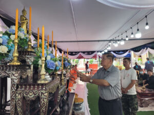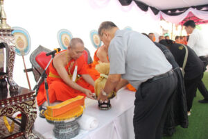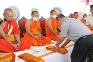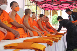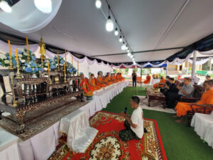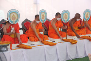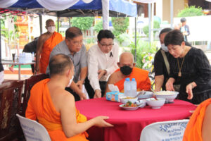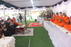 จากนั้น เจ้าหน้าที่อาราธนาศีล พระภิกษุสงฆ์สวดเจริญพระพุทธมนต์เพื่อถวายเป็นพระราชกุศล ก่อนร่วมกันถวายจตุปัจจัยไทยธรรม ทอดผ้าไตร และกรวดน้ำอุทิศถวายเป็นพระราชกุศล พร้อมจัดเลี้ยงพระเพลถวายแด่พระภิกษุสงฆ์