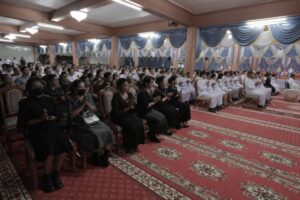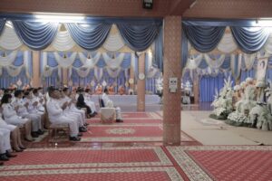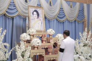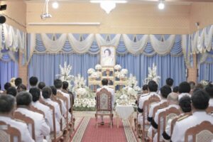 บรรยากาศภายในพิธีเป็นไปด้วยความสงบ เรียบง่าย และสมพระเกียรติ โดยมีการสวดพระอภิธรรมถวายเป็นพระราชกุศล ท่ามกลางความสำนึกในพระมหากรุณาธิคุณของผู้เข้าร่วมพิธีทุกคน