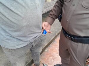 จากการตรวจค้นพบยาบ้าจำนวน 338 เม็ด ลักษณะเม็ดกลมแบน สีส้ม ประทับอักษร “WY” บรรจุในซองพลาสติกสีดำและสีน้ำเงินแบบกดเปิดปิด ซ่อนอยู่ในกระเป๋ากางเกงยีนส์ที่ผู้ต้องหาสวมใส่ จากนั้นตรวจค้นภายในรถ พบอาวุธปืนลูกซองยาว หมายเลข 17784 พร้อมกระสุนขนาดเบอร์ 12 จำนวน 1 นัด แขวนอยู่หลังเบาะนั่งผู้โดยสารด้านหน้า และวางกระสุนไว้ที่ช่องวางแก้วน้ำบริเวณกลางรถ