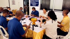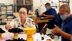 ผู้ต้องขังเรือนจำกลางสงขลา ประดิษฐ์ริบบิ้นและปลอกแขนแสดงความอาลัยแด่ “สมเด็จพระนางเจ้าสิริกิติ์ พระบรมราชินีนาถ พระบรมราชชนนีพันปีหลวง” ด้วยสำนึกในพระมหากรุณาธิคุณอันหาที่สุดมิได้