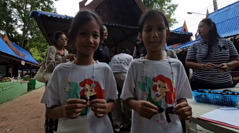 วันที่ 31 ต.ค. 68 ที่บริเวณหน้าศาลากลางจังหวัดอ่างทอง เด็กหญิงกมลชนก จันทร์งาม และเด็กหญิงรัตนาภรณ์ จันทร์งาม อายุ 9 ปี แฝดนักเรียนจากโรงเรียนอนุบาลพระนครศรีอยุธยา ร่วมกับเจ้าหน้าที่ศูนย์การเรียนรู้ระดับตำบลตลาดกรวด และศูนย์การเรียนรู้ระดับอำเภอเมืองอ่างทอง ช่วยกันทำริบบิ้นไว้อาลัยแจกให้ประชาชน
