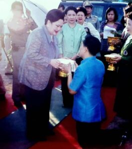 ซึ่งพอตนทราบข่าวก่อนหน้านั้นว่าท่านจะทรงเสด็จมาที่ ในอำเภอพยัคฆภูมิพิสัย จังหวัดมหาสารคาม ก็ได้เตรีมตัวเพื่อขับรถเดินทางไปเข้าเฝ้า เพราะห้วงนั้นเป็นช่วงที่พึ่งเกิดพายุสึนามิ ตนก็เลยอยากจะไปเข้าเฝ้าเพื่อถวายเงินโดยเสด็จพระราชกุศล ซึ่งในขณะที่ตนเดินทางไปถึงก็ได้ผ่านการตรวจจากเจ้าหน้าที่ที่เกี่ยวข้อง แต่เนื่องจากตนไม่ได้ลงทะเบียนเข้าเฝ้า จึงต้องรอเป็นลำดับสุดท้าย พอถึงคราวที่ตนได้รับอนุญาตให้เข้าเฝ้า ก็เกิดความปลื้มปิติในใจเป็นอย่างมาก เพราะไม่เคยคิดว่าตนเป็นแค่พ่อค้าคหบดี จะได้ใกล้เจ้าฟ้าเจ้าแผ่นดิน ซึ่งในขณะที่ถวายเงินเพื่อเสด็จพระราชกุศล ท่านก็ยังมีพระราชดำรัสว่า ถึงแม้ยากเกิดภัยสึนามิ คนในภาคอีสาน และคนภาคใต้ก็ยังมีความรักความสามัคคีกัน
