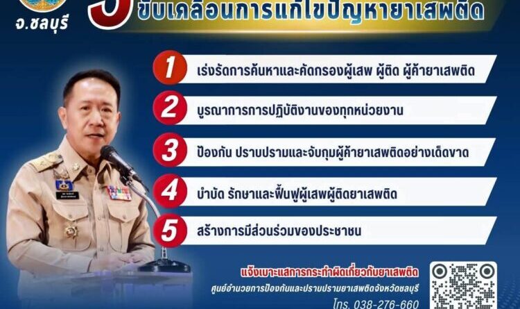 นายนริศ นิรามัยวงศ์ผู้ว่าราชการจังหวัดชลบุรีมอบนโยบายการขับเคลื่อนการแก้ไขปัญหายาเสพติดในพื้นที่จังหวัดชลบุรีให้กับภาคส่วนที่เกี่ยวข้อง สอดคล้องกับนโยบายรัฐบาลตามแนวทาง “Quick Big Win : ขับเคลื่อนอย่างรวดเร็วสู่ชัยชนะที่ยิ่งใหญ่”แนวนโยบายสำคัญ 5 ด้าน