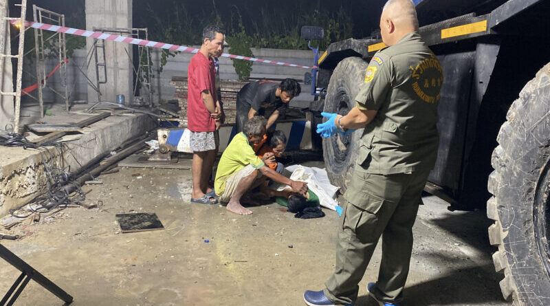 ฝนตกคนงานก่อสร้างปีนนั่งร้านจะขึ้นไปเทปูนลื่นพลัดตกจากชั้น 5 ลงมาดับ