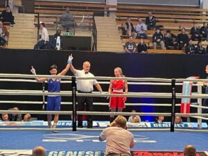รุ่น 54 กก.หญิง ณัฐนิชา จงโปร่งกลาง ชนะคะแนน อาย่า แฮมดี้(ฝรั่งเศส)5-0ผ่านเข้าชิงชนะเลิศ พบ ไอวี่ เจน สมิธ(อังกฤษ)