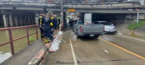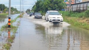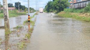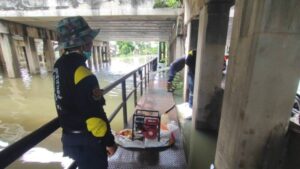 วันที่ 3 พ.ย.68 บริเวณใต้สะพานถนนบางขันธ์-หนองเสือ ตำบลคลองสาม อำเภอคลองหลวง จังหวัดปทุมธานี ทางเจ้าหน้าที่บรรเทาสาธารณภัยของอบต. คลองสาม ได้นำเครื่องสูบน้ำและกระสอบทรายมากั้นและสูบน้ำออกจากพื้นผิวถนนที่มีน้ำท่วมขังอยู่ทำให้รถสัญจรได้ลำบาก หลังจากมีฝนตกลงมาหลายวันซึ่งทำให้พื้นที่ในเขตของจังหวัดปทุมธานีมีน้ำท่วมขังบริเวณพื้นผิวอยู่ถนนทำให้รถสัญจรได้ลำบากและน้ำในคลองได้มีปริมาณเพิ่มสูงขึ้นทำให้เข้าท่วมบ้านเรือนประชาชนและพื้นถนน ซึ่งขณะนี้ในแต่ละเทศบาลและเจ้าหน้าที่ที่มีส่วนเกี่ยวข้องกำลังสูบน้ำออกจากคลองเพื่อเร่งการระบายน้ำ แต่ก็ยังมีน้ำท่วมอยู่ในหมู่บ้านและพื้นถนนอยู่จำนวนหลายแห่ง ซึ่งคาดว่าวันนี้ทั้งในกรุงเทพฯและปริมณฑลก็จะมีฝนตกลงมาอีก