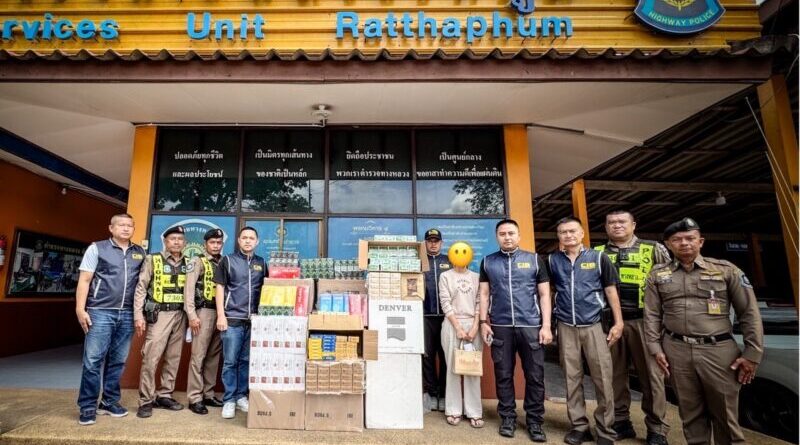 ตำรวจทางหลวงสกัดจับสาวขนบุหรี่หนีภาษีจากหาดใหญ่ส่งจังหวัดกระบี่ ยึดของกลางมูลค่ากว่า 20 ล้านบาท