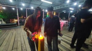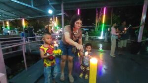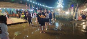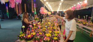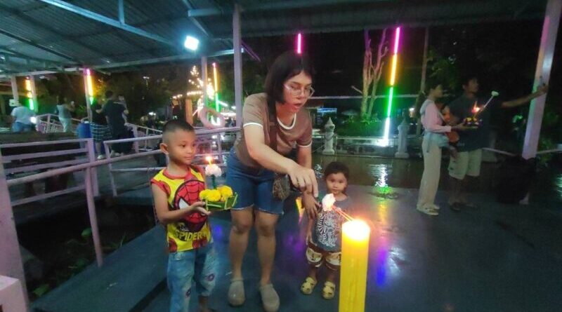 ปทุมธานีประชาชนหลั่งไหลลอยกระทงภายในวัดริมแม่น้ำเจ้าพระยาแม้จะมีน้ำเอ่อท่วมเข้าวัด