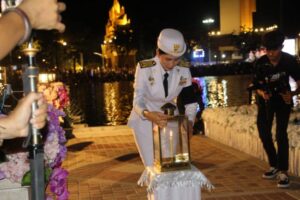 พร้อมขบวนแห่กระทงประทีปพระราชทานจาก พระบาทสมเด็จพระเจ้าอยู่หัว และสมเด็จพระนางเจ้า พระบรมราชินี