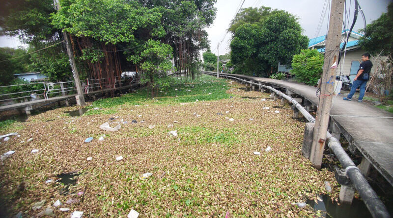 ตะลึงพบขยะผักตบชวาแน่นคลองย่านแพรกษา