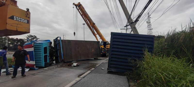 วันที่ 6พ.ย.68 ร.ต.อ.กันตพัฒน์ ปัสสา รองสารวัตรจราจรสภ.คลองหลวง ได้รับแจ้งมีอุบัติเหตุรถเทรลเลอร์บรรทุกตู้คอนเทนเนอร์เสียหลักพลิกคว่ำกีดขวางการจราจรบริเวณถนนพหลโยธินขาออกช่องทางคู่ขนานกม. 42 ตรงข้ามตลาดไท ตำบลคลองหนึ่ง อำเภอคลองหลวง จังหวัดปทุมธานี จึงไปที่เกิดเหตุพร้อมด้วยเจ้าหน้าที่ตำรวจจราจรสภ.คลองหลวง และรถกู้ชีพเทศบาลเมืองท่าโขลง