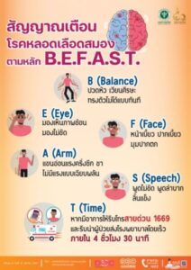 T (Time) นำผู้ป่วยส่งโรงพยาบาลโดยเร็ว ภายใน 4 ชั่วโมง 30 นาที หากไปพบแพทย์ช้า อาจเป็นอันตรายถึงแก่ชีวิต หรืออาจจะกลายเป็นโรคอัมพฤกษ์ อัมพาต ทำให้ไม่สามารถช่วยเหลือตนเองได้