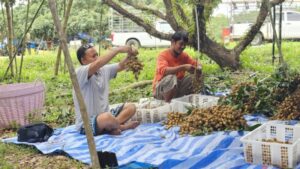 แรงงานชาวเมียนมาจากศูนย์พักพิงบ้านต้นยาง กาญจนบุรี เริ่มเก็บลำไยวันแรกที่จันทบุรี นายจ้างชื่นชม ขยัน และอดทน คาดว่าจะสามารถทดแทนแรงงานกัมพูชาที่หายไปได้เป็นอย่างดี