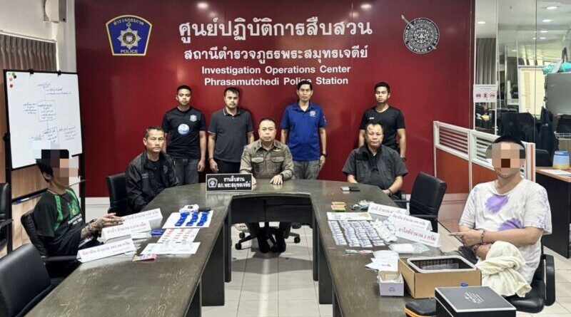 ตำรวจพระสมุทรเจดีย์บุกจับ “ลี้ คู่สร้าง-คู่สม” พร้อมพวก ยึดยาเสพติดอื้อ มูลค่าเกือบล้าน เตรียมแพ็กขายสถานบันเทิง