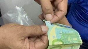 ส่วนธนบัตรต่างประเทศ (ยูโร) ปลอม เป็นงินสกุลยูโรฉบับละ 100 ยูโร จำนวน 5 ฉบับ (หมายเลข AX34117842254 จำนวน 2 ฉบับ , AD11533784038 จำนวน 2 ฉบับ , AE26783368291 จำนวน 1 ฉบับ)