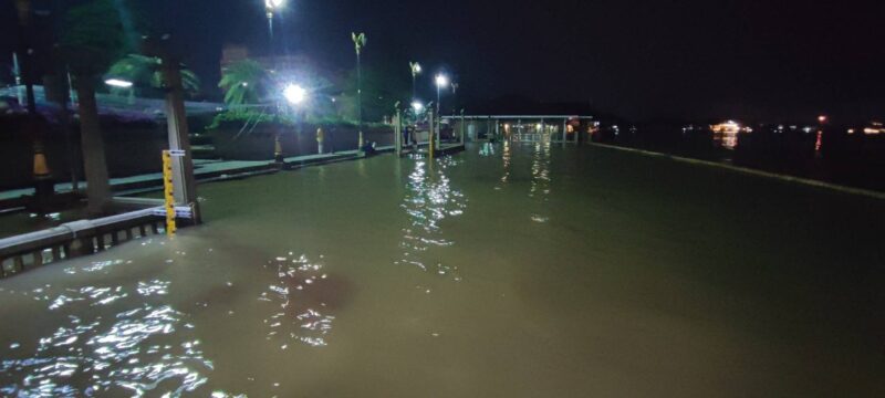 ปทุมธานี – วัดโพธิ์เลื่อนวิกฤตน้ำเจ้าพระยาเข้าท่วมพื้นที่วัดจนท.เร่งเสริมกระสอบทรายกั้นถนน