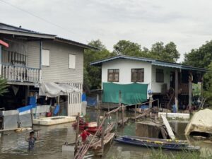 จากการสอบถาม นาง สมศรี ธัญเพชรไพบูรณ์ อายุุ 56 ปี ชาวบ้านหมู่ที่ 2 ต.สามโคก อ.สามโคก จ. ปทุมธานี ที่กำลังขนอิฐบล็อคขึ้นบนโฟมเข้าบ้านอีกครั้งหลังจากรื้อออกตอนน้ำลง โดย นาง สมศรี ได้กล่าวว่าน้ำท่วมตั้งแต่เดือนกันยายน ท่วมแบบไปได้มาได้ รอบนี้ต้องใช้เรือและใช้โฟม จริงๆน้ำลดไปแล้วประมาณ 3-4 วัน เก็บล้างบ้านไปแล้ว มันกลับมาอีกรอบหนักกว่าเดิม ที่กั้นน้ำก็ทุบออกไปแล้ว เพราะเห็นว่าน้ำลด เลยต้องก่อที่กั้นน้ำใหม่ ก่อทุกวัน วันละชั้นตามระดับน้ำ