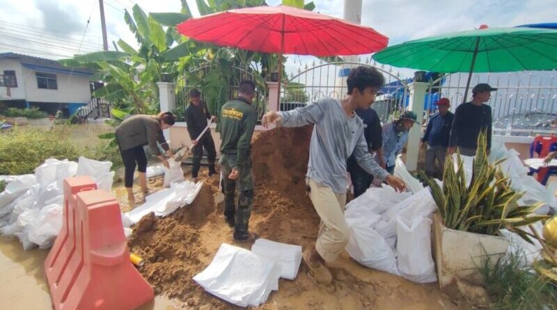 ปทุมธานีทหารระดมกำลังช่วยชาวบ้านกรอกกระสอบทรายหลังระดับน้ำเจ้าพระยาสูงขึ้นต่อเนื่อง